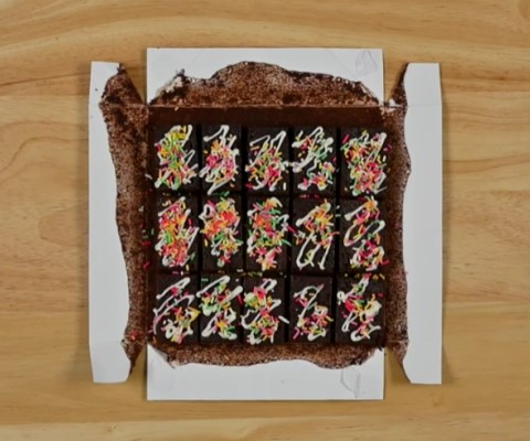 ナイフでブラウニーの端を切り落とし、お好みの大きさにカットします。