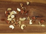 - ミックスナッツは飾り用に粗く刻み、弱火でフライパンをゆすりながら軽く色がつくまでローストしておきます。