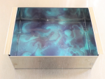 残りの①を2つに分け、用意しておいた色素<ブルー>と<パープル>をそれぞれ入れて混ぜ合わせ、お好みの濃さにします。③の上に交互になるようにスプーンで流し入れます。冷蔵庫で冷やし固めます。