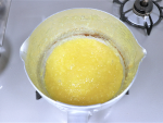 ②に①を加え、耐熱性のゴムベラ(または木べら)で練りながら、焦がさないように中火で10分程加熱します。