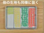 冷えた花を抜き、並べて再度冷凍庫で冷やしておきます。残った生地も同様に(※ライトグリーンは葉の抜き型で)行います。
