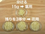 のクッキー生地をまず15g(葉用)に取り分け、残り約180g(お花用)を3等分(約60g×3)にします。