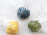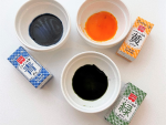 - クチナシ色素(青・黄・緑)を分量通りに付属のスプーンでとり、湯小さじ1/2弱(分量外約2g)を加えて溶いておきます。
