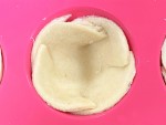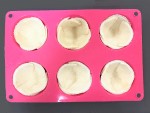 マフィン型にの生地を切れ込み同士が重なるように敷きます。重なった部分を指で押し付けるようにして整えると、の生地を入れたときに液漏れしにくくなります。