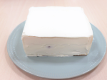 スポンジケーキを2枚に重ね、約12cmの正方形になるように周りを切り落とします。