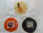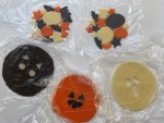 猫(耳と目)とジャックオランタン(目と口)のパーツも作って冷凍庫で凍らせておきます。(ジャックオランタンの口はコウモリの抜き型を使っています)