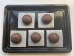 ⑦を冷凍庫からだし、1つずつ形を抜き出して並べて再度冷凍庫に入れます。残った生地も丸め直して、小さめの抜き型で跡をつけ、無駄なく抜いておきます。(パーツ)
