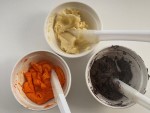 - 【色素液と黒色のペースト】ハロウィンカラーのオレンジ・黒を用意します。