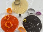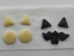 お化けは、丸や楕円の型で抜き、ジャックオランタンと猫は、⑥の冷凍したパーツを埋め込み、周りの生地とよく馴染ませます。