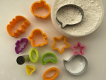 - お好きなハロウィンのクッキー型と、抜く時に型にまぶすための薄力粉を用意します。霧吹きに水を入れておきます。