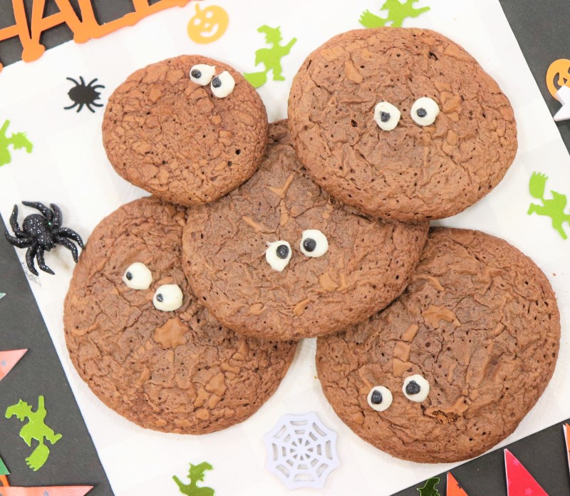表面は無骨でひび割れが特徴的なクッキー、中はしっとり濃厚なブラウニー!モンスター風に顔を描いて仕上げます。