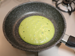 熱したフライパンにサラダ油をうすくひき、フライパンに油がまわれば、余分な油をキッチンペーパーでふきとり、②の生地を直径約13cmになるように焼きます。弱火で片面約3分ずつ、表面がプツプツしてきたらひっくり返します。それより一回りずつ小さいパンケーキを焼いていきます。(合計約15枚)※焼き時間はパンケーキのサイズで調整してください。