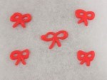 デコペンレッドをお湯(40~50℃)につけてやわらかくして、クッキングシートの上にリボンを描き、冷蔵庫で冷やし固めます。