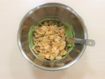 ②に抹茶パウダーを加えてよく混ぜ、アーモンドスライスとコーンフレークを加えて混ぜます。