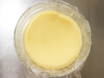 - ゼラチンリーフ(レアチーズケーキ用)は、たっぷりの冷水でふやかしておきます。