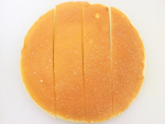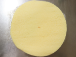 - スポンジ(2枚スライス済)をさらに1/2の厚さにカットします。