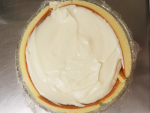 ⑨のクリームを全体に塗り、スプーンの背を使って塗ります。お好みで残ったクリームを口金のついた絞り袋に入れ、下の部分を一周絞ります。