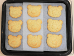 160℃に温めたオーブンで約20分うっすらと焼き色がつくまで焼きます。網の上で冷まします。