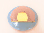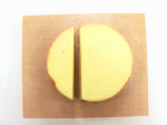 スポンジケーキ(2枚スライス済)の間に①のシロップを塗り、1/3の部分でカットします。