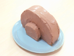 大ボウルに生クリームの約半量を入れ、ココアパウダーを加えダマにならないように泡だて器で混ぜ合わせます。残りの生クリームを加えて混ぜ合わせた後、大さじ2杯分を別の小ボウルにとります。小ボウルの生クリームを500Wの電子レンジで約20秒加熱し、そこへふやかしたゼラチンリーフの水気をしっかりと絞り、加えて溶かします。