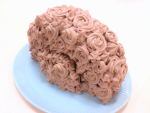お皿の上に立たせて、③の残りのクリームを星口金をつけた絞り出し袋に入れ、絞り出します。ポイント:バラのようにまずは円を描くように大きく絞り、その間を埋めるように1つずつ絞るとすき間が出来辛いです。
