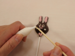 ①をスプーンで流し入れます。(うさぎの耳など細い部分は竹串を使うと入れやすいです。)モールドのはじをトントンと軽くたたき表面を平らにします。