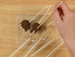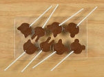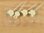 モールドをひっくり返し、指で押しながらチョコレートを外し、皿の上に並べます。(※スティックをひっぱるとチョコレートから外れやすいのでご注意ください。)