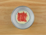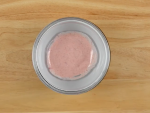 ①の作業で溶かしておいたホワイトチョコに、パウダー状にしておいた③のフリーズドライいちごをゴムベラ等で混ぜ合わせます。