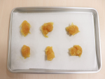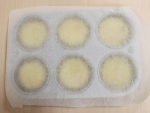 170℃のオーブンで約15分焼きます。型からそっとはずして裏返しにし、オーブン用シートを敷いた天板の上に置いてさらに5~10分位焼きます。(※やけどにご注意ください。)焦げそうな場合はアルミホイルをかぶせてください。(※オーブンの機種により焼き時間は多少異なります。)網にのせて冷まします。