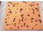 クランベリーを小さくカットし、天板の上に散りばめます。