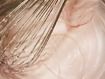 卵白をふわふわになるまで泡立て、粉糖を加えて混ぜ合わせます。