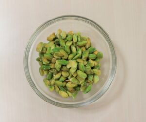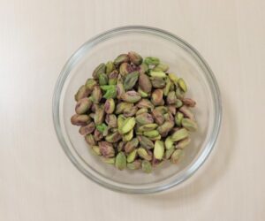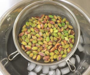 ピスタチオは殻をむいて約30秒熱湯に入れた後、ザルにあげ冷水につけ薄皮をむいておきます