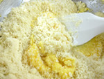 粉類【A】を②にふるい入れ、ゴムベラで粉っぽさがなくなるまでさっくりと混ぜます。