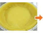 【仕上げ】焼き型にタルト生地を敷き込み、アーモンドクリームを流し入れ平らにしてから天板にのせ、180℃に温めたオーブンで約20分焼きます。