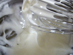 粉糖(シュガーパウダー)を一度に入れ、泡立てた後にココアパウダーを加えてさらに混ぜます。