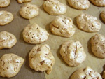 天板にオーブン用シートを敷き、スプーンで一杯ずつ3の生地を間隔をあけて 並べます。