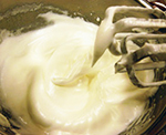 ボウルにバターを入れ、白っぽく、ふわっとクリーム状になるまですり混ぜます。