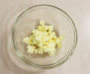 バターは1㎝角にカットし、冷蔵庫で直前まで冷やしておきます。