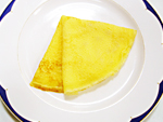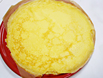 温めたフライパンにサラダ油を薄く敷き、玉じゃくしで生地を薄く流し、手でフライパンをゆすって丸く大きく伸ばし、両面を焼きます。
