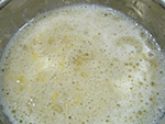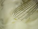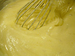 つぶしたバナナの中に、牛乳とサラダ油を加え、卵黄生地に入れ混ぜ、バニラオイルを 加えます。