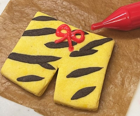 ●黄一色の生地を作って鬼のパンツ型に焼いて、後からデコペン・チョコで虎柄を描くだけなら、もっと簡単にできます。