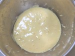 湯せんで溶かしたバター50gに②の生地を大さじ3程加えて混ぜ、②の生地に戻して全体に合わせたら用意しておいた型に流し入れます。180℃に温めたオーブンで30分、160℃に温度を下げて10分竹串を刺してぬれた生地が付かなくなるまで焼きます。網に乗せて冷まし、粗熱が取れたら型から外します。