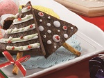 ●ブラウニーを薄めに焼いて、冷めたら三角形にカットします。そこに棒状のスティックやお菓子などをさすとクリスマス型のブラウニーに仕上がります。お好みでデコペンやアイシング等を使ってトッピングをデコリます。