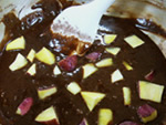 ➀に粉類【B】を加えてさっくりと合わせ、クルミと下ごしらえをしたさつま芋を加えます。