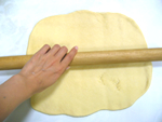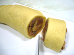 くるりと巻いて棒状にし、巻き終わりを指でつまんで止めます。