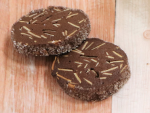 ビニールシート(又はラップ材)に①の生地をはさみ、めん棒で3㎜厚に伸ばし、型抜きができる固さになるまで冷蔵庫で約30分冷やします。お好みの抜き型で抜き、オーブン用シートを敷いた天板に間隔をあけて並べ、170℃に温めたオーブンで約12~18分焼き、網にのせて冷まします。冷めたクッキーに湯せん(40~50℃)で温めたデコペンで線描きをし、チョコが乾かないうちにトッピングをします。