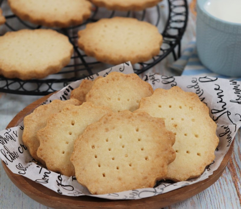 ①の生地を直径3cmの棒状にし、表面に卵白を塗り、お好みでグラニュー糖をまぶします。ラップ材に包み、冷蔵庫で30分休ませて、5mm厚に切って②と同様に焼きます。お好みで三角形や四角の棒状にしたり、生地にアーモンドスライスなどのナッツやチョコチップを加えてアレンジしてください。