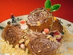 四隅を1cm位あけて⑨のクリーム半分をパレットナイフで塗り、生地の手前から持ち上げ端からくるくると巻きます。巻き終わりを下にして、しっかりと形を整えてから冷やします。