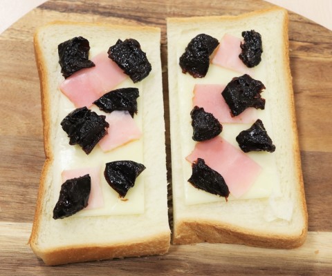 食パンとスライスチーズは半分にカットし、プルーンは6等分にしておきます。