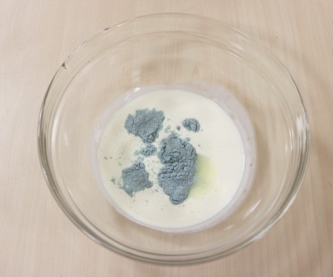 ※ミントパウダーはほんのり優しい色合いになります。ミント色にする場合は食用色素を加えてお好みの色に調整する必要がありますので、ここで用意しておいた色素をお好みで調整しながら加えます。